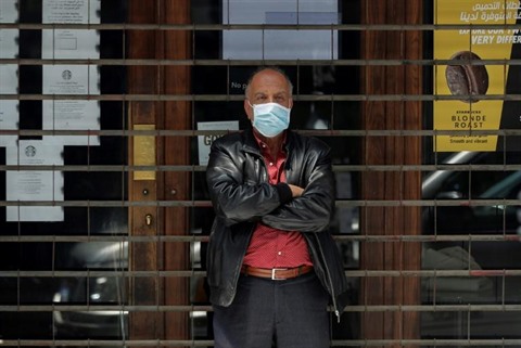 | Un homme devant un café fermé à Beyrouth, au Liban, le 7 mai. |