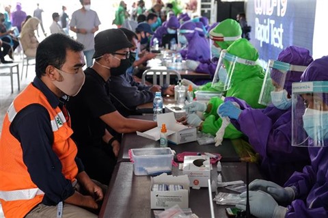 | Test du COVID-19 à Jakarta, le 8 juin. |