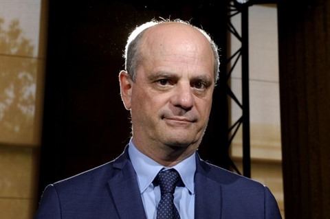 | Le ministre de l'Éducation nationale Jean-Michel Blanquer lors d'une conférence de presse, le 26 mai à Paris. |