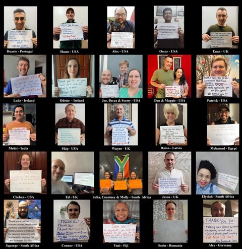 | Photo de plus de 20 étrangers remerciant le Vietnam avec des messages manuscrits. |