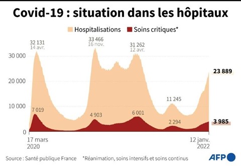 En 24 heures, 249 personnes ont été emportées par la maladie, portant le nombre total de décès à 126.305 depuis le début de l'épidémie. Les infections ont connu une progression fulgurante sous la poussée du variant Omicron, extrêmement contagieux. Mais il s'avère moins dangereux que les précédents variants du virus et les patients COVID infectés par Omicron restent moins longtemps à l'hôpital que les patients infectés par Delta, selon le ministre de la Santé Olivier Véran.