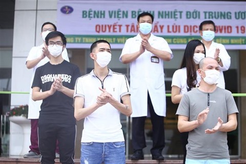 | Des patients de COVID-19 annoncés guéris le 5 mai à Hanoï. |
