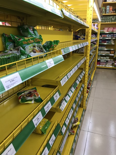 | Pénurie de provisions dans la supérette Bach Hoa Xanh pendant les jours de confinement, à Hô Chi Minh-Ville. |