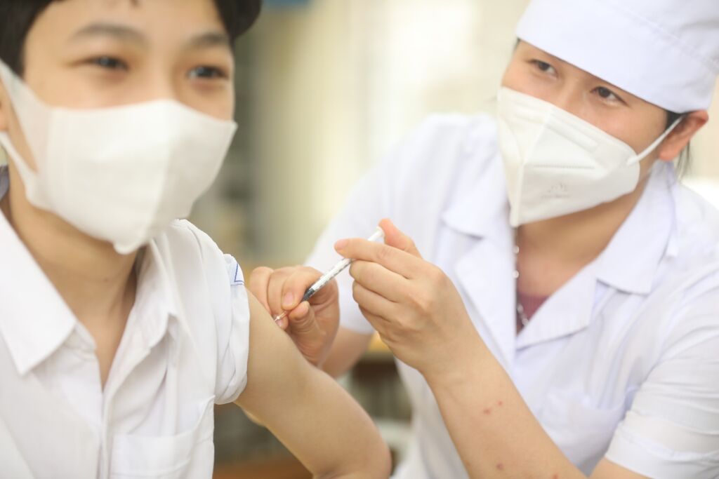 | Vaccination contre le COVID-19 pour un élève à Hanoï. |