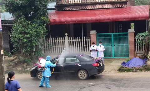 | Désinfection dans un district de la province de Thanh Hoa (Centre). |