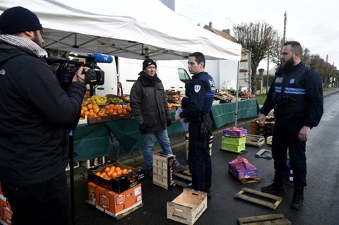 | Les forces de l'ordre évacuent le marché de Crépy-in-Valois le 1er mars. |