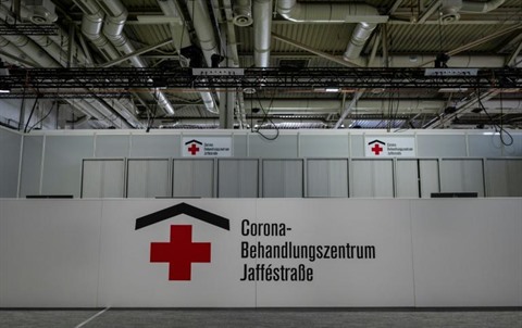 Photo prise le 20 août de l'aire de réception du Centre de traitement du coronavirus de la Jaffestrasse à Berlin