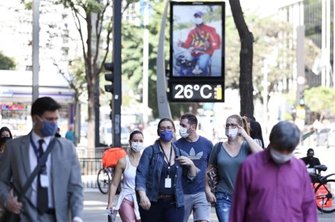 Des Brésiliens portent le masque de protection à Sao Paulo.