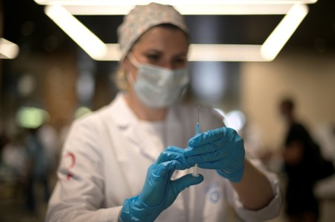 | Une infirmière prépare une seringue du vaccin russe Spoutnik V contre le COVID-19 dans un centre de vaccination à Moscou, le 14 juillet. |