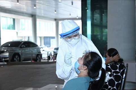 | Prélèvement d'un échantillon pour le dépistage du COVID-19 à Bangkok. |