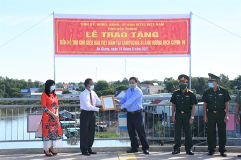 Le don vise à aider les Cambodgiens d'origine vietnamienne à surmonter les difficultés et sera transféré à l’Association Khmer - Vietnam au Cambodge pour acheter les masques de protection, les fournitures médicales et les denrées alimentaires, a déclaré Lâm Dung Liêm, vice-président du Comité du front de la Patrie du Vietnam de la province de Soc Trang, lors de la cérémonie de remise.