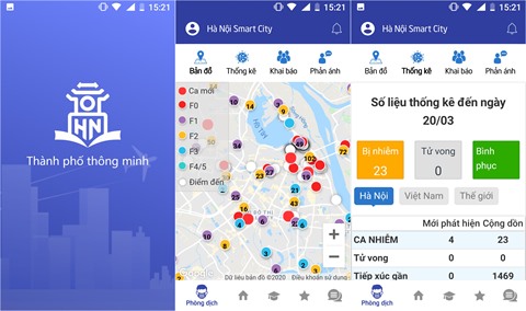 Le 18 mars, l’application sur smartphone Hà Nôi SmartCity a vu le jour. Elle a été créée dans le but de surveiller les cas positifs et les personnes en quarantaine ainsi que les guérisons nécessitant un suivi à la sortie de l’hôpital. Désormais, les habitants de la capitale peuvent l’utiliser pour consulter toutes les informations relatives au COVID-19. Cette plateforme donne l’alerte aux administrateurs au cas où des personnes surveillées se déplacent en dehors des zones de confinement.