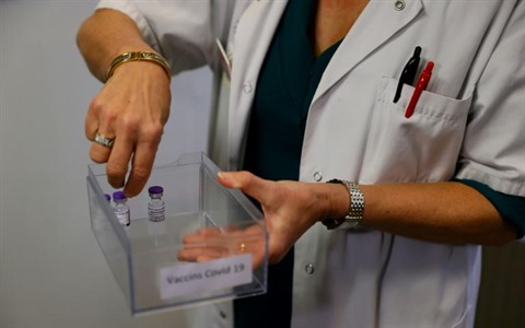 | Présentation de doses de vaccins Pfizer-BioNTech lors du début des vaccinations à l'hôpital de Sevran le 27 décembre 2020. |