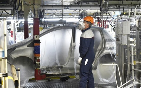 | Un ouvrier de Toyota sur une chaine d'assemblage le 21 avril à Onnaing (Nord de la France). |