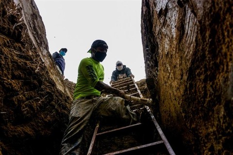 | Des fossoyeurs creusent des tombes pour les victimes du coronavirus dans un cimetière de Mixco, dans la banlieue de la ville de Guatemala, le 6 août. |