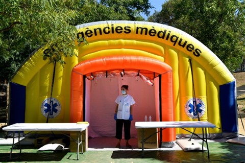 | Un centre provisoire de tests du COVID-19 à Ripollet, en Catalogne dans le Nord-Est de l'Espagne, le 6 août. |