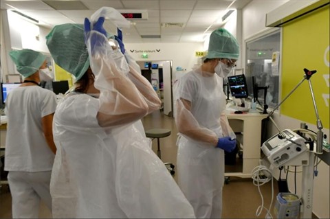 | Une équipe de soignants se prépare dans le service de réanimation de l'hôpital Purpan à Toulouse (Sud-Ouest de la France), le 4 février. |