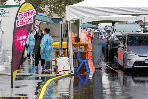 | Des automobilistes font la queue dans un centre de test du COVID-19, le 15 février à Auckland, en Nouvelle-Zélande. |