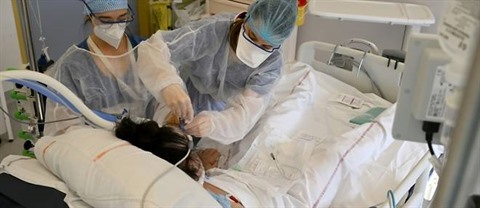 | Des infirmières s'occupent d'un patient touché par le COVID-19 dans une unité de soins intensifs à l'hôpital de la Timone, à Marseille, le 5 janvier. |