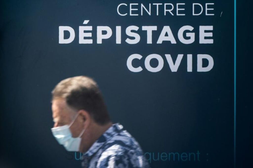 | Un homme passe devant un centre de dépistage du COVID-19 le 16 juillet 2022 à Nantes. |