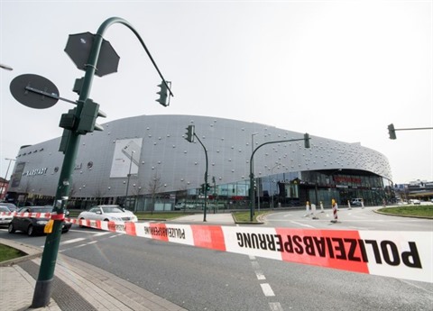 | Le centre commercial "Limbecker Platz" à Essen (Ouest de l'Allemagne) fermé par les autorités dans le cadre d'une menace d'attentat liée à l'État islamique (EI), le 11 mars. |