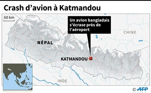 | Carte de localisation de Katmandou au Népal où un avion de la compagnie bangladaise US-Bangla Airlines s'est écrasé. |