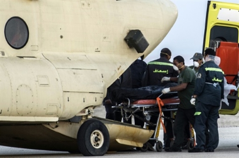 | Des secouristes égyptiens sortent les corps des passagers de l'avion russe qui s'est écrasé dans le désert du Sinaï le 31 octobre . |