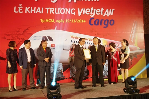 | Remise du certificat de fondation de VietjetAir Cargo par un représentant du ministère des Communications et des Transports. |