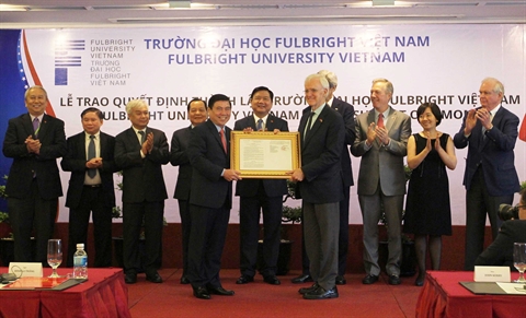 | Cérémonie de remise de la décision de créer l’Université Fulbright Vietnam. |