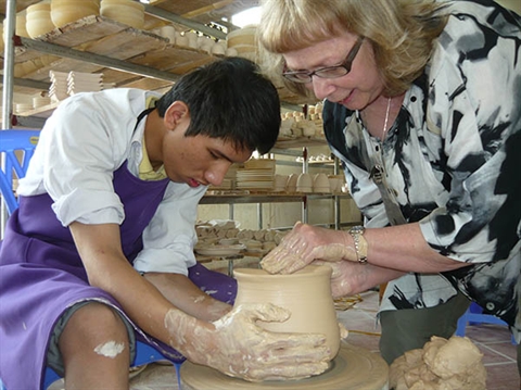 Des enfants malvoyants occupés à travailler l’argile. Voilà ce que le sculpteur suédois Tommy Jerhammar a découvert lorsqu’il a visité le village de céramique de Huong Canh, dans le district de Binh Xuyên (province de Vinh Phuc). «Pourquoi as-tu voulu ajouter des yeux sur ton vase ?», a demandé l’artiste à Lê Huy Hao, 19 ans. Et ce dernier de répondre: «Parce que j’aime mes yeux». «Rêves et amour apparaissent dans chacune de vos oeuvres», a dit à son tour Tommy Jerhammar, ému.