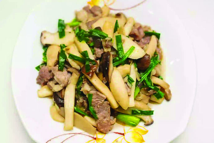 - Laver la viande de porc, la couper en fines tranches et la mariner avec 1/2 c.à.c de sel et 1 c.à.c de poivre.
