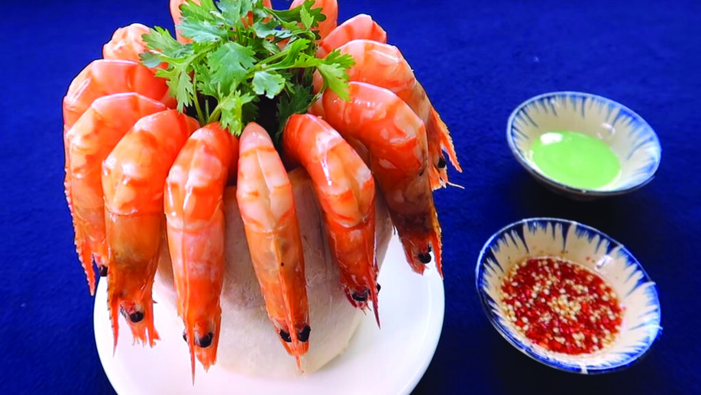 - Ce plat de crevettes à la vapeur de l’eau de coco est extrêmement simple. Une fois cuites, les crevettes ont une magnifique couleur rouge-orangé et un parfum typique. En les dégustant, vous sentirez leur chair très tendre et sucrée, rehaussée par la saveur douce et unique de l’eau de coco.