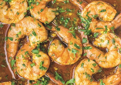 - Une fois que les crevettes sont bien cuites, parsemez le mélange de coriandre et de peau de limette. Servir avec du riz ou du pain.