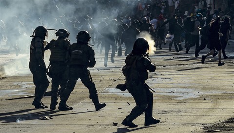 | Affrontements dans le centre de Santiago du Chili, le 20 décembre 2019. |