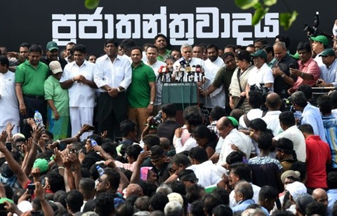 Dans une démonstration de force, des dizaines de milliers de soutiens de Ranil Wickremesinghe ont manifesté mardi pacifiquement devant sa résidence officielle à Colombo. Il y vit retranché depuis le début de la crise malgré les menaces d'expulsion manu militari.