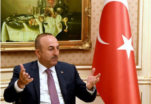 | Le ministre turc des Affaires étrangères Mevlut Cavusoglu lors d'une conférence de presse à Koweit City, le 15 juin. |