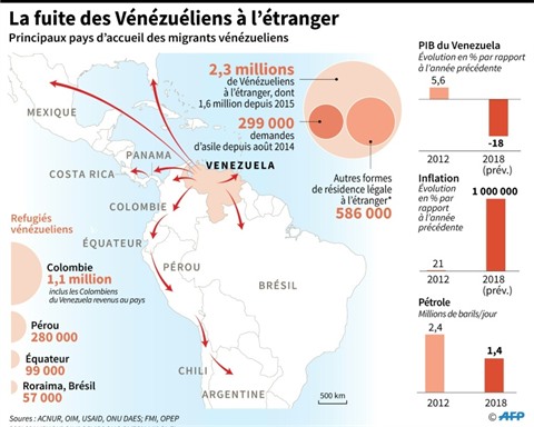 Le gouvernement vénézuélien a assuré que les migrants allaient "revenir" grâce aux réformes économiques du président Maduro. Selon les Nations unies, sur les 2,3 millions de Vénézuéliens vivant à l'étranger, plus de 1,6 million sont partis depuis 2015. Quelque 90% d'entre eux se sont réfugiés dans les pays de la région.