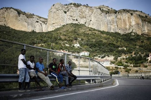 | Des migrants attendent à Vintimille près de la frontière franco-italienne, le 8 août. |