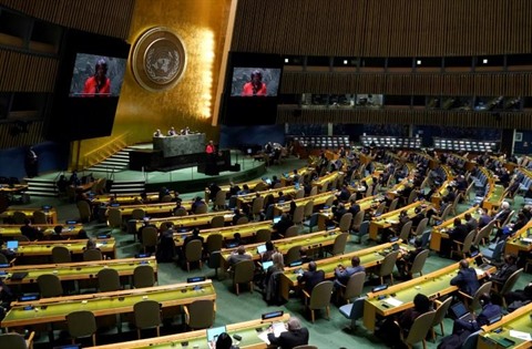 | à l'Assemblée générale de l'ONU à New York, le 23 février 2022. |