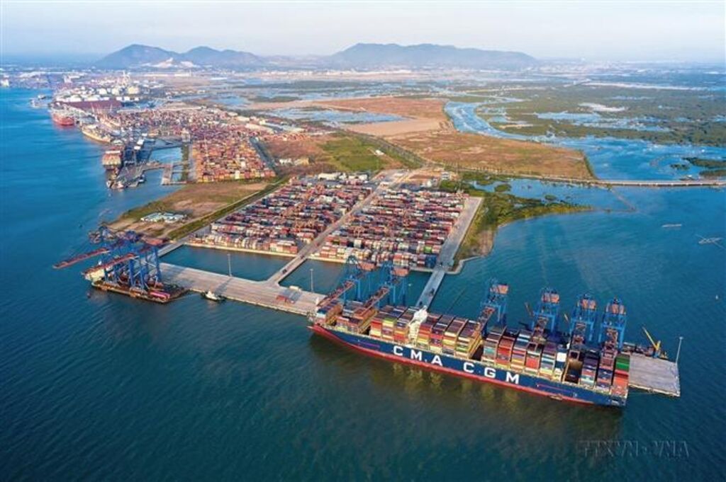 | Le port international Gemalink, situé dans le groupe de ports maritimes de Cái Mép-Thi Vai, accueille régulièrement de grands navires étrangers. |