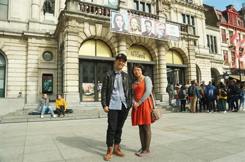 | La journaliste du "Courrier du Vietnam" et le danseur Bùi Ngoc Quân devant le théâtre NT Gent en Belgique. |