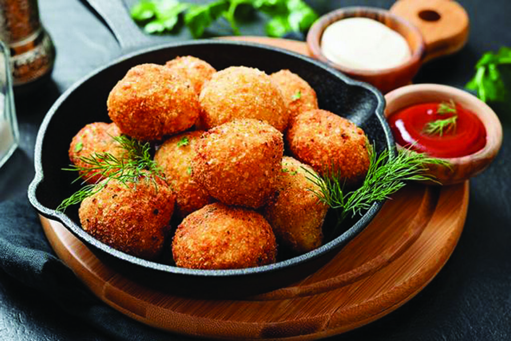 - Égouttez les boulettes sur du papier absorbant et servez-les chaudes avec de la sauce pimentée, du ketchup et de la mayonnaise.