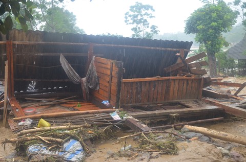 | Une maison totalement détruite lors des crues dans la province de Yên Bai. |