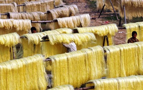 «Les vermicelles de Cu Dà sont entièrement faites à partir de farines d’amidons de canna. Il est important de choisir un bon amidon de canne pour faire des vermicelles de bonne qualité. Le canna vient des provinces septentrionales de Bac Kan, Lai Châu, Son La ou Môc Châu où il est cultivé sur les coteaux», explique Vu Van Thân, un producteur connu de vermicelles. La couleur des vermicelles dépend du goût de chacun. Nous utilisons du caramel liquide pour transformer nos vermicelles en une couleur jaune-brun». «Au naturel, les vermicelles sont blanches», ajoute-t-il.