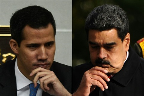 | Le président autoproclamé par intérim, Juan Guaido, président de l'Assemblée nationale du Venezuela (gauche), et président Nicolas Maduro. |