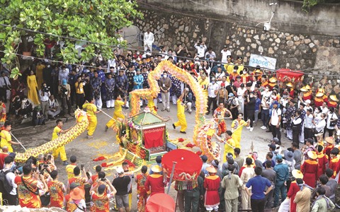 | Cérémonie de procession de la statue de +Bà Chúa Xu+, lors de sa fête. |