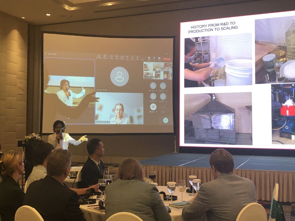 | Lors de la conférence récapitulative, les entreprises ont partagé le processus de participation au projet de commerce bio en Asie du Sud-Est. |
