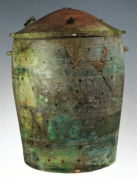 | Le tambour en bronze de Ngoc Lu est le plus ancien et le plus beau tambour de la culture de Dông Son découvert à ce jour. Photo : MNHV/CVN |