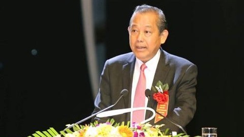 | Le vice-Premier ministre vietnamien Truong Hoà Binh prend la parole lors du forum, le 15 octobre à Hô Chi Minh-Ville. |
