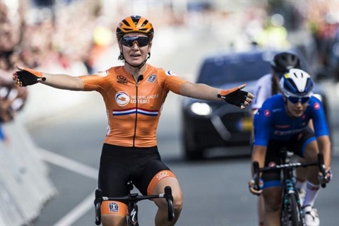 | La Néerlandaise Amy Pieters lors de son sacre au Championnat d'Europe Elite, le 10 août 2019 à Alkmaar aux Pays-Bas. |